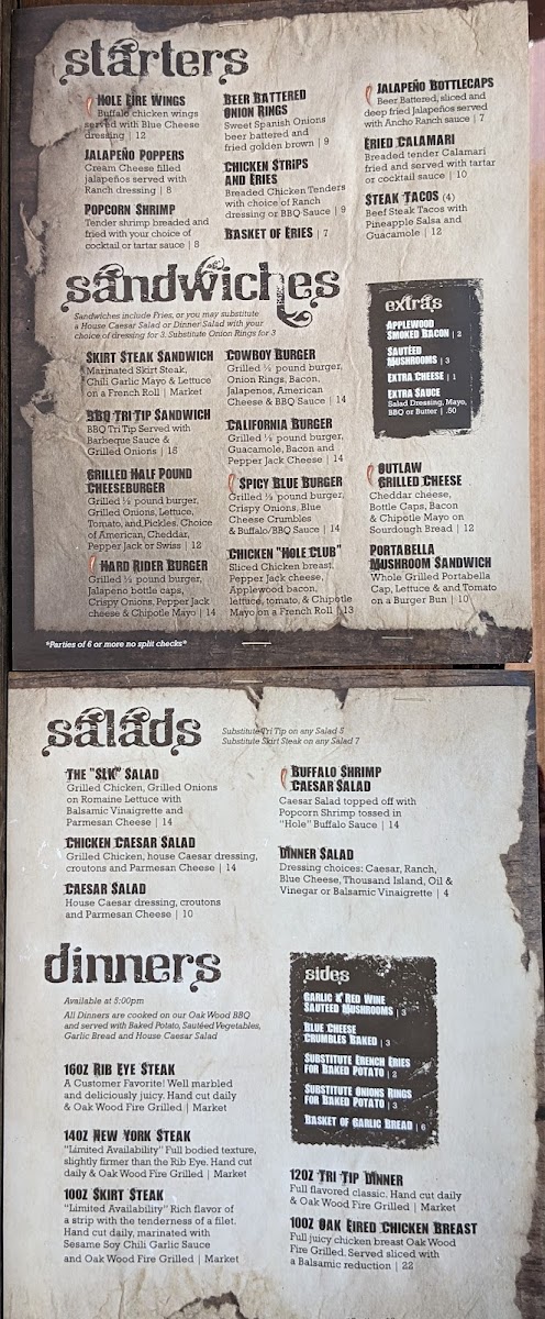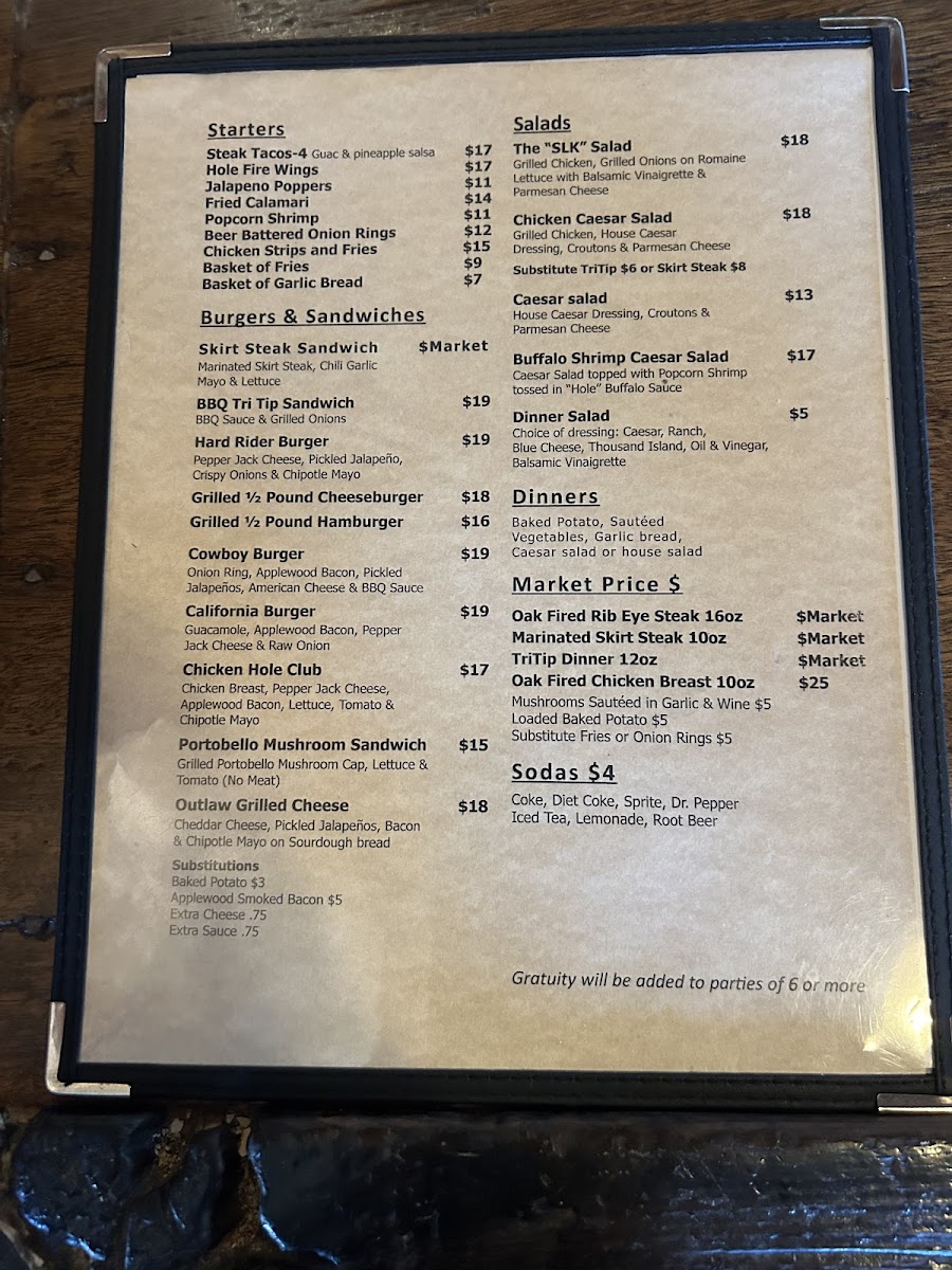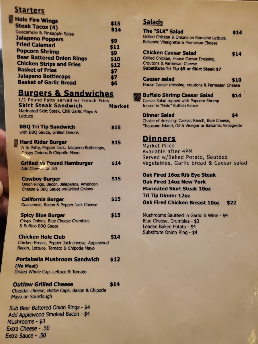 Popular Dishes: Among the standout items on the menu, the sixteen-ounce ribeye is frequently praised, with customers like Michael Powell declaring it the best they've ever tasted. Savory accompaniments such as Garlic Red Wine Sautéed Mushrooms and Blue Cheese Crumbles Baked provide the perfect balance to your meal, while the Basket of Garlic Bread is an irresistible starter that pairs beautifully with a drink from the beer selection. Don't forget to save room for dessert—signature offerings like Chocolate Lava Cake and Caramel Apple Pie promise a sweet ending to your dining experience.
